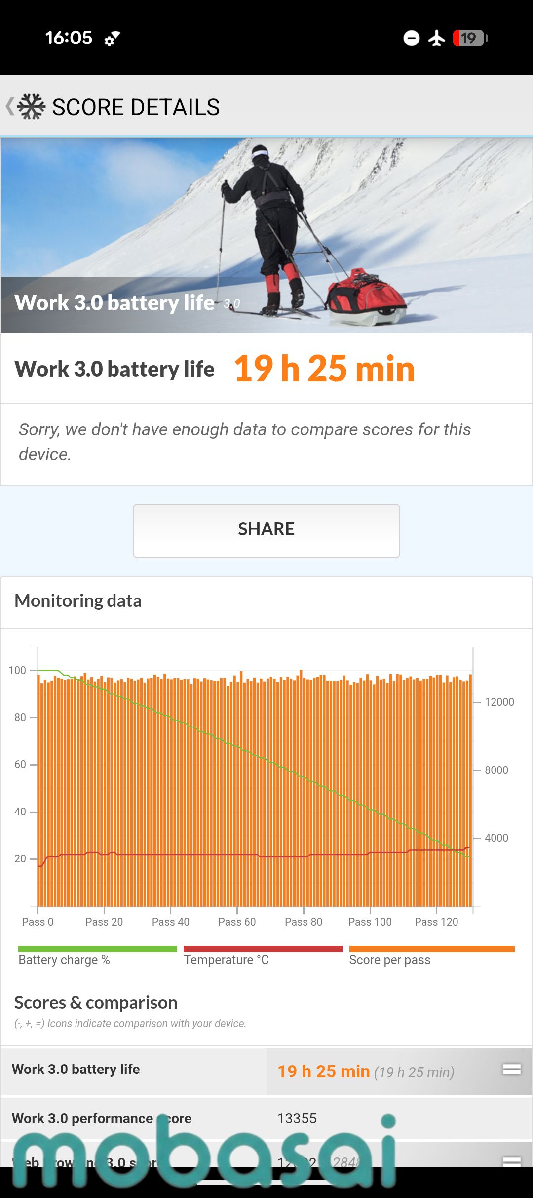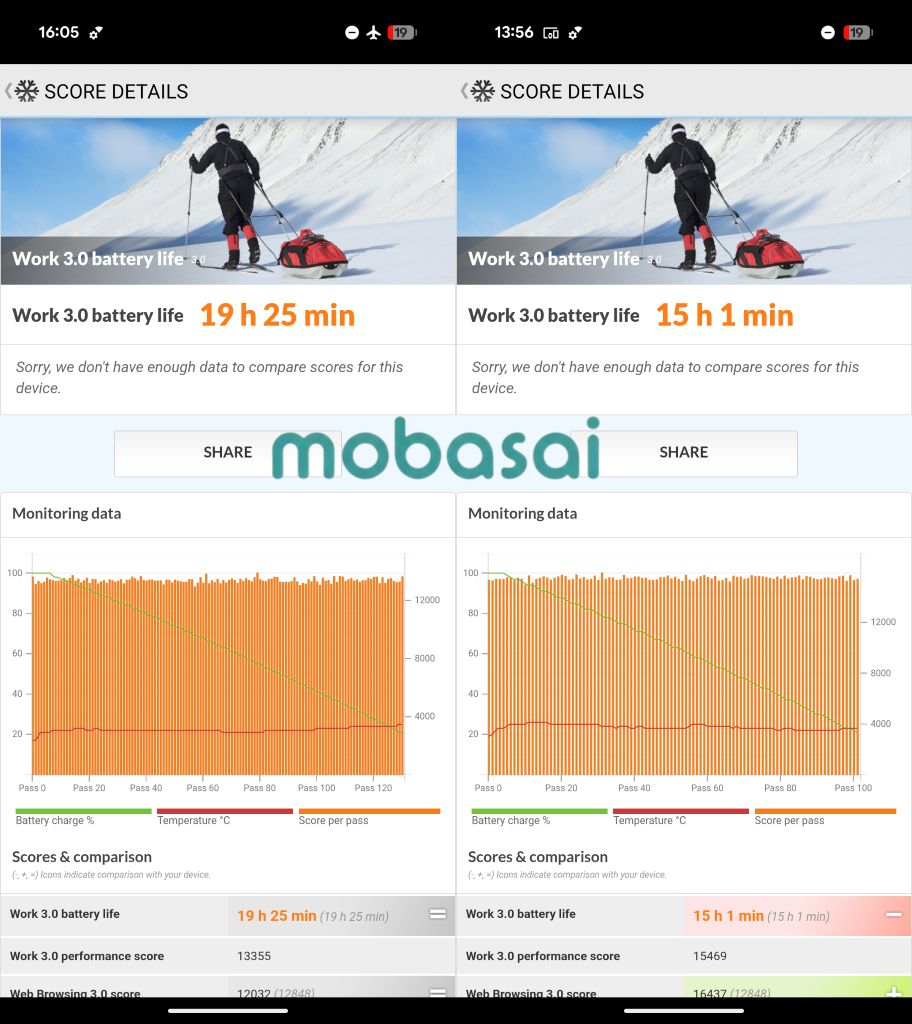 PCMark Work 3.0 battery lifeでは動作自体は一定で行いますが、端末の設定(特にディスプレイ周り)で大きく測定結果が変わります。