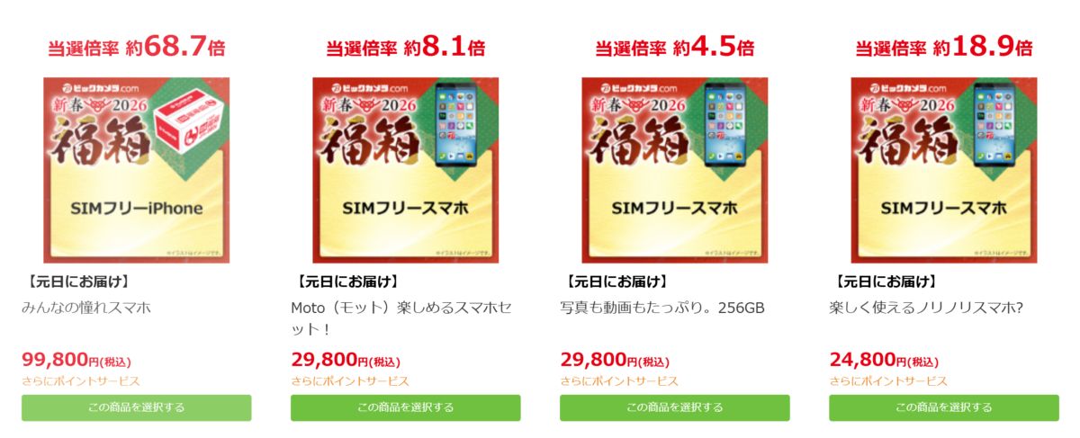 ビックカメラ.comにて2026新春福箱の抽選予約販売が開始しました。