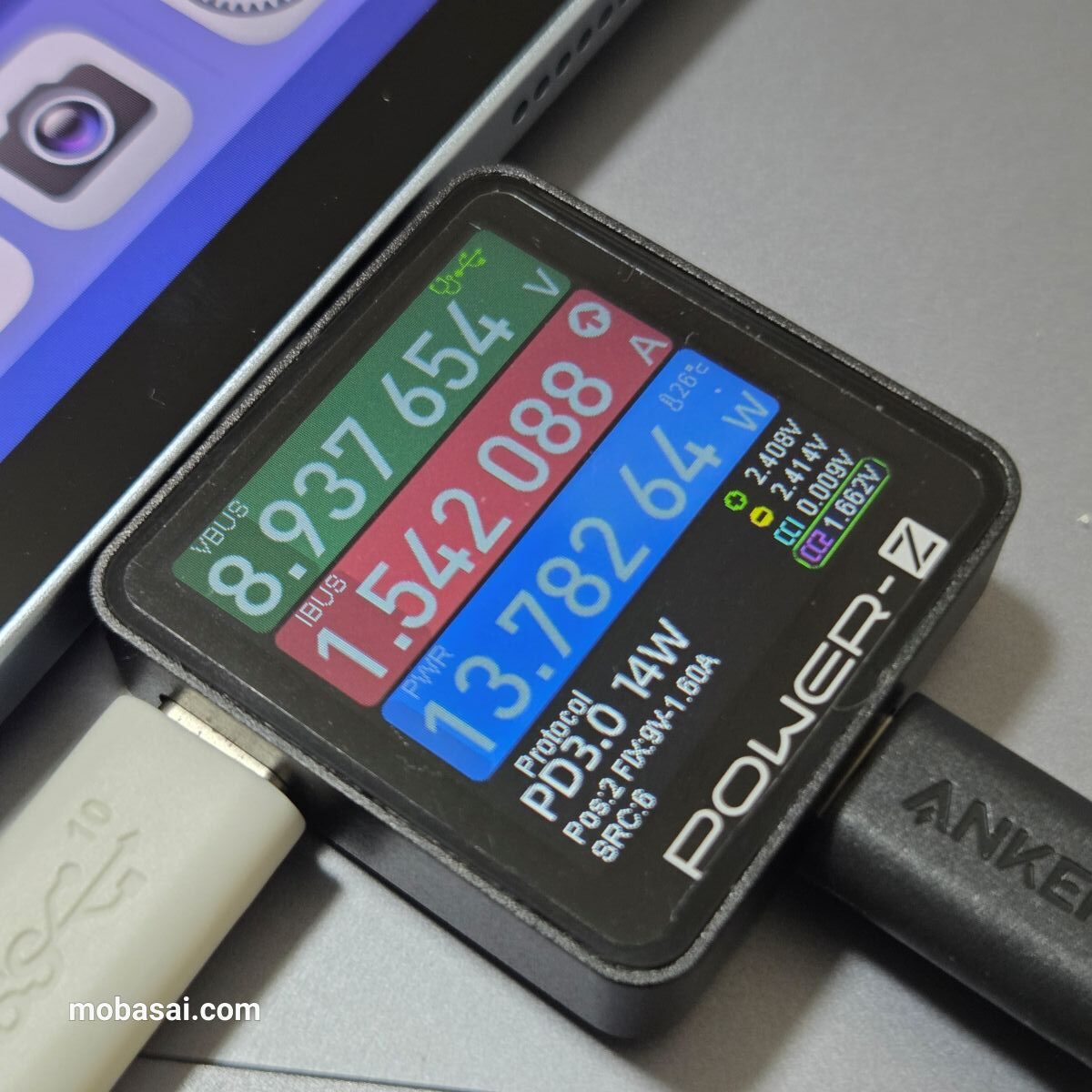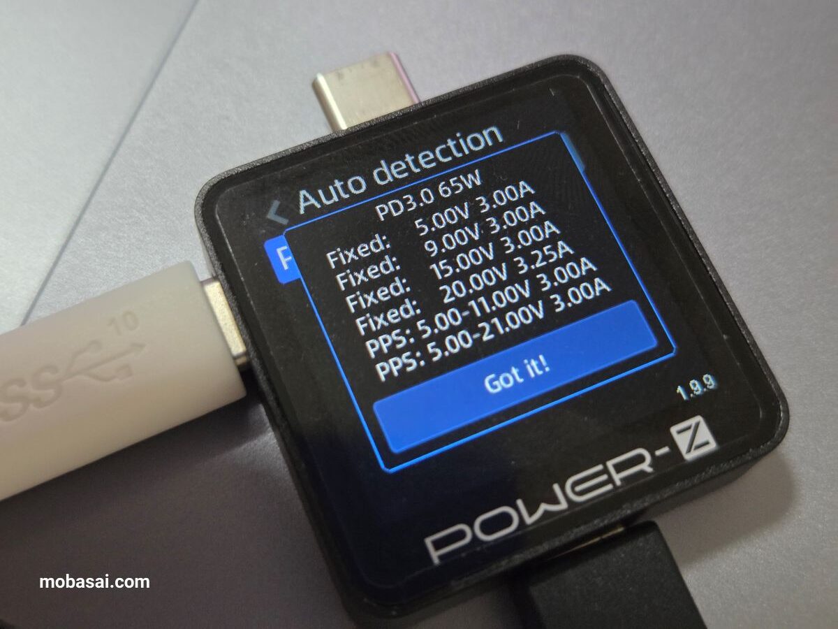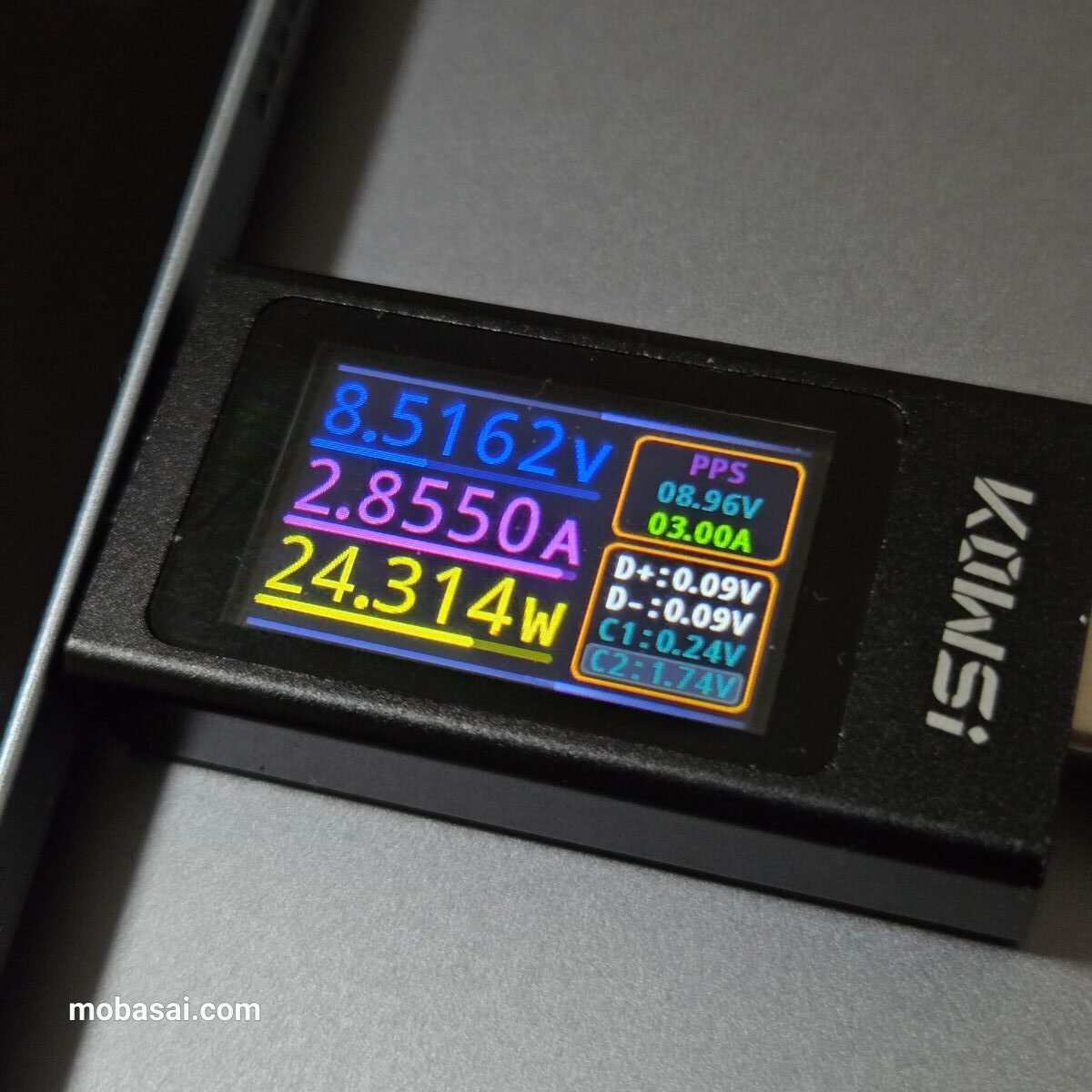 ちなみに付属充電器では最大38W(9.42V-4.1A)のプロトコルを確認できましたが、上記のPPS検証結果では4.1Aまで対応せず、3A止まりで最大28Wぐらいだったので、Xiaomi Pad 8はPPSで45Wまで出せない可能性があります。