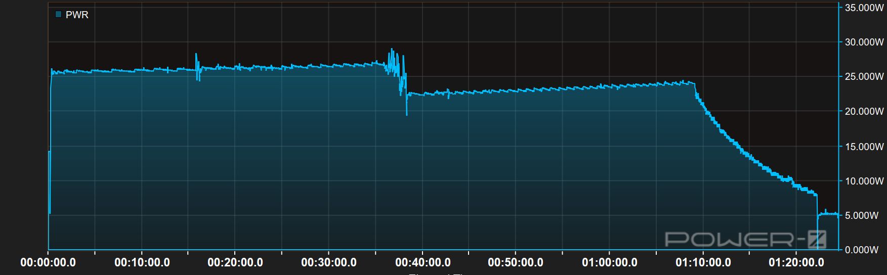 45W 付属充電器での充電(1時間17分)
