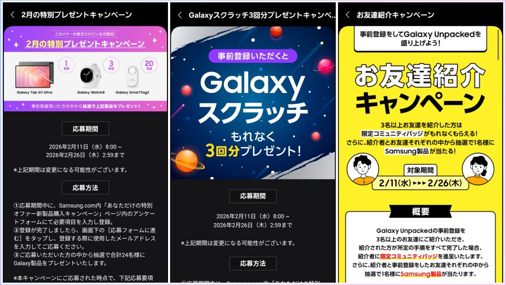 またすでにGalaxyスマホ・タブレット利用者ならGalaxy Tab S11 Ultraなどが当たる豪華抽選などにも参加できます。