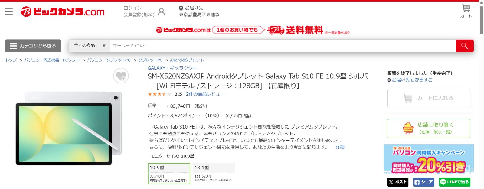 え、もう終わり?家電量販店でGalaxy Tab S10 FEの取り扱いが終了する