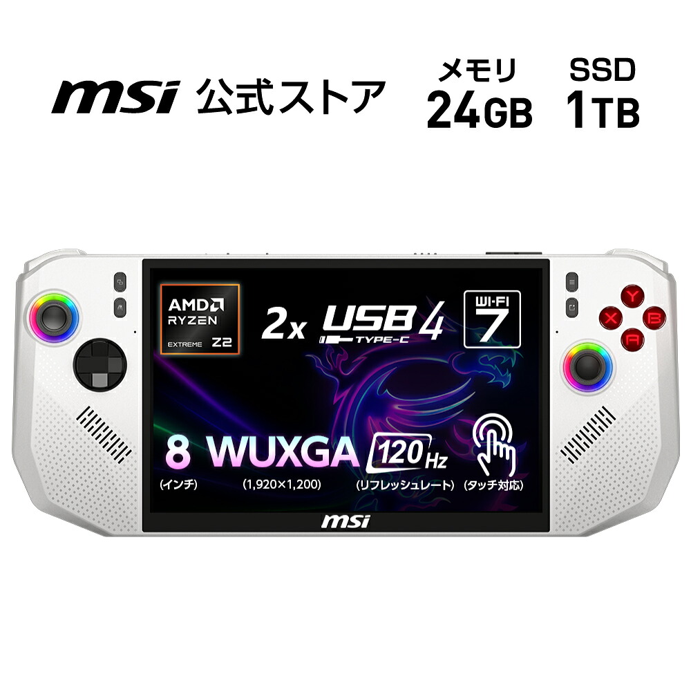 【楽天市場】AMD Radeon Graphics/Ryzen Z2 Extreme/8インチ/120Hz/24GB/1TB(M.2 NVMe)/最大5時間(JEITA 3.0 動画再生時)、最大10時間(JEITA 3.0 アイドル時)/約763.5g/ゲーミングノートPC/Claw-A8-BZ2EM-401JP:MSIストア楽天市場店