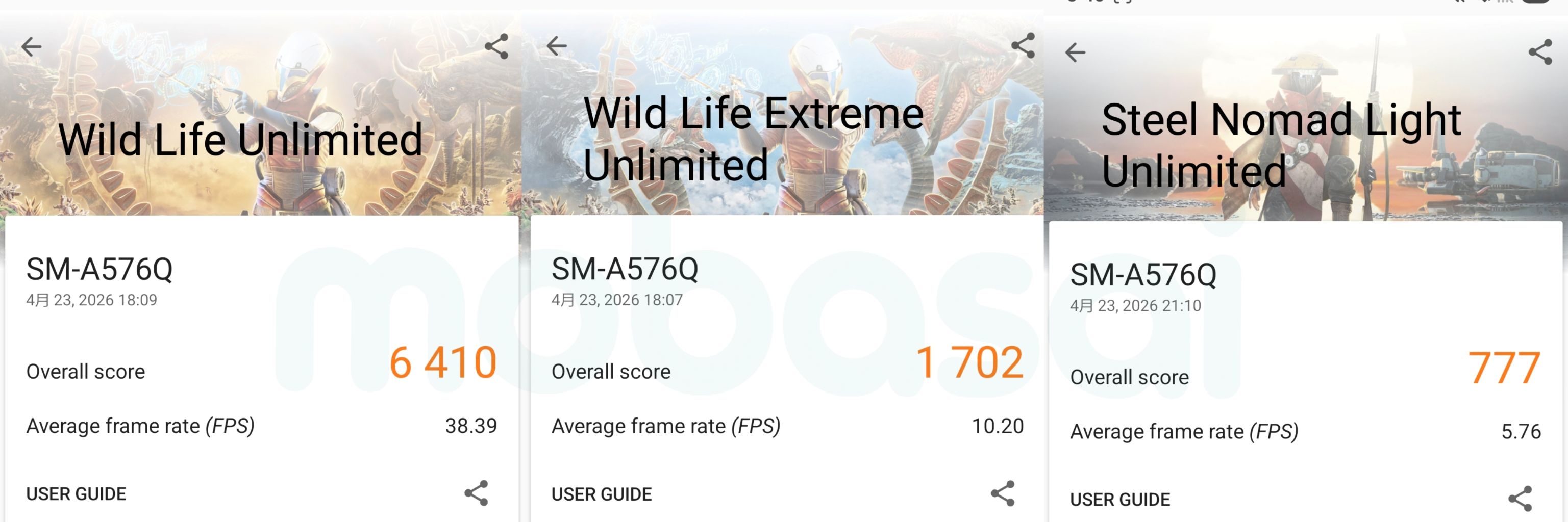 Exynos 1680のチップ自体は一部でハイエンドクラスと同等となるUFS 4.1ストレージ規格や4K60FPS撮影に対応していますが、これが搭載されているGalaxy A57ではそれらの項目は最大限発揮されておらず、UFS 3.1・4K30FPS撮影止まりとなっています。