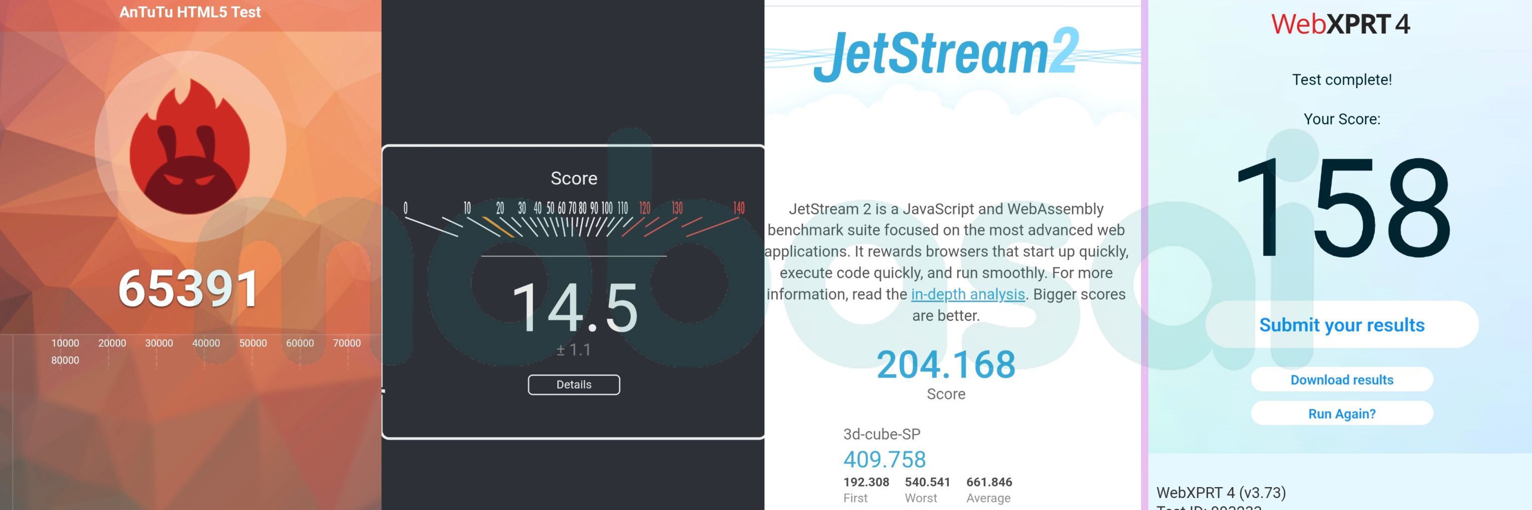 AnTuTu HTML5 Test・Speedometer3.1・JetStream2・WebXPRT 4