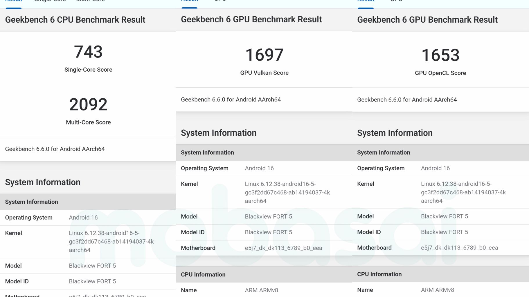 Blackview FORT 5 Heelio-G100 Geekbench 6