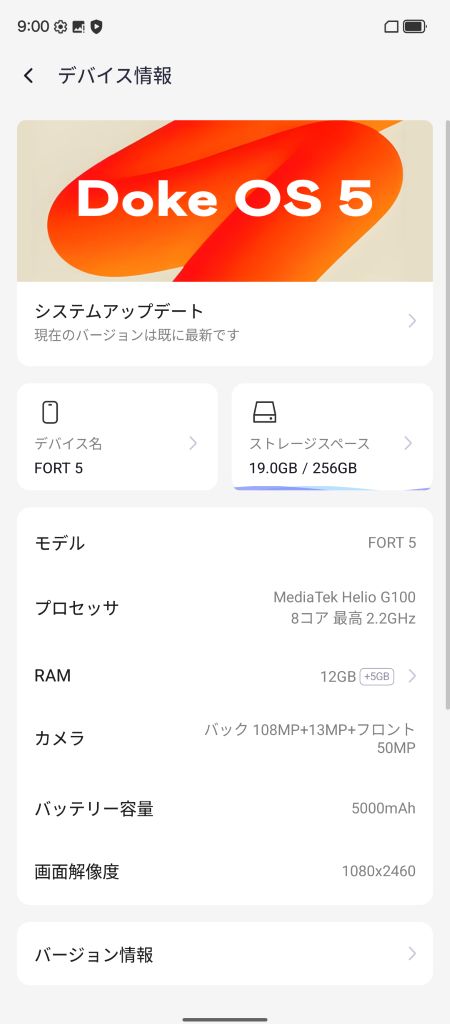 OSは程よくカスタマイズされたAndroid 16ベースのDoke OS 5を搭載していて、パッと見はXiaomi HyperOSやOPPO ColorOSなどに近い見た目だと感じました。