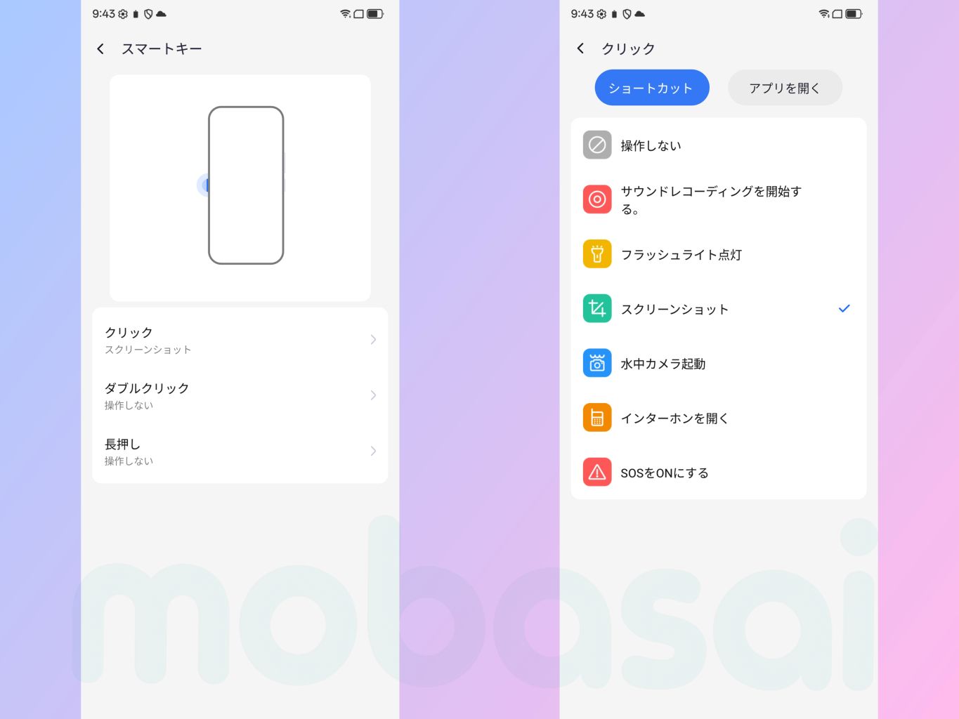 スマートキーと呼ばれる左側のサイドボタンを自由に割当もできます。