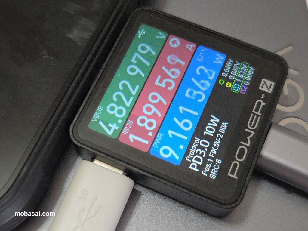 充電速度の公称値は付属充電器の限界と同じ33Wですが、AnkerやUGREENなどいくつかの市販の100W USB-PD充電器で試してみたところ、いずれもPD3.0 10Wが充電速度の上限となりました。