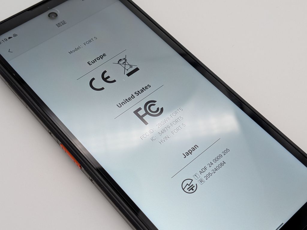 今回レビューさせていただくFORT 5はヨーロッパ向けに販売されているモデルでしたが、本製品は日本の技適を取得しているようで、本体化粧箱・本体背面にシールが貼ってあり、内部のソフトウェアでも技適マークを参照できるようになっています。