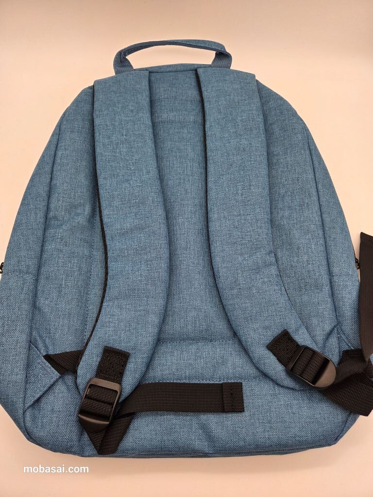 肩紐はかなり太めで、重たい荷物でも肩にあまり負担をかけずに背負うことができます。コンパクトなリュックの割に、フットワークが軽そうな荷物という印象を与えないと思います。