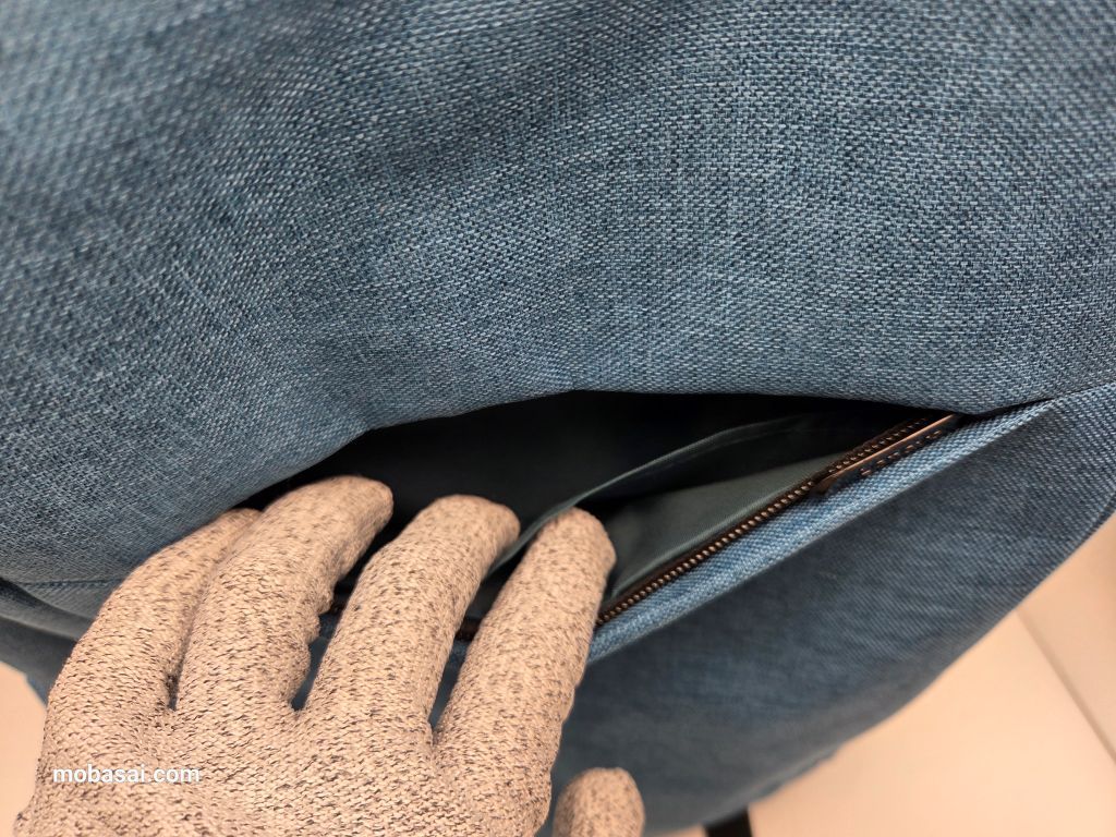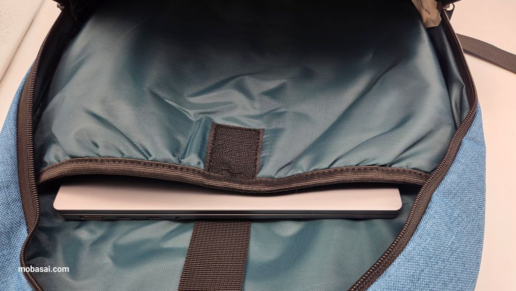 PC収納用のポケットは底面から浮いていないので、直接ノートをポケットの中に入れると地面・床へリュックを置いたとき損傷しないか少し不安になります。