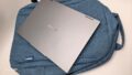 ブルーと言っても淡い色合いなので、ノートパソコンを収納するカバンとしても、それ以外でのカジュアルな場面でも使いやすいと感じます。