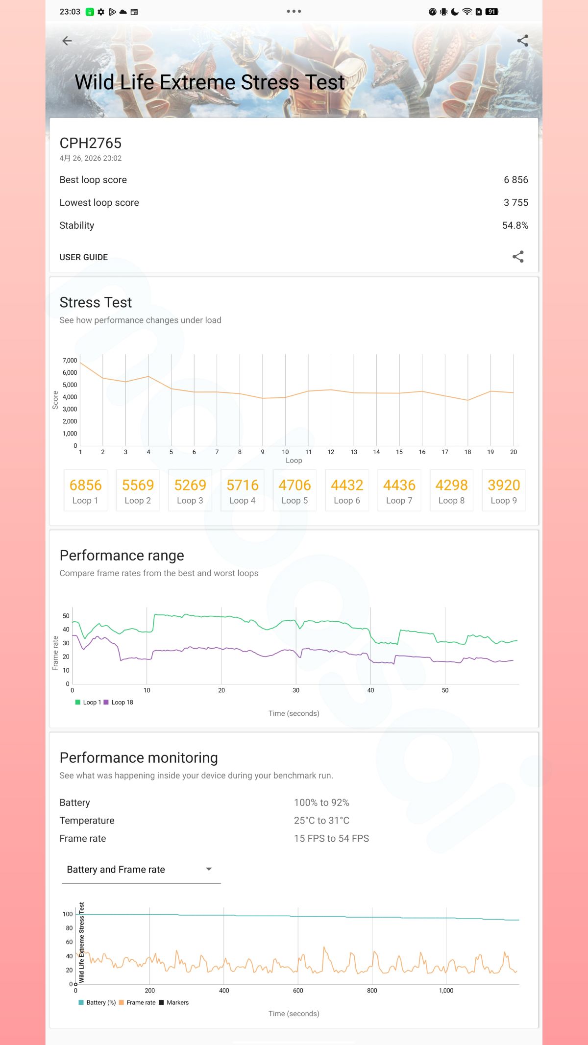 グラフィック性能の耐久ベンチマーク、3DMark Wild Life Extreme Stress Testも測定しています。20分の間、高負荷な4Kグラフィックを実行します。