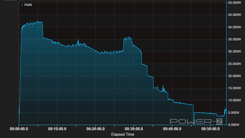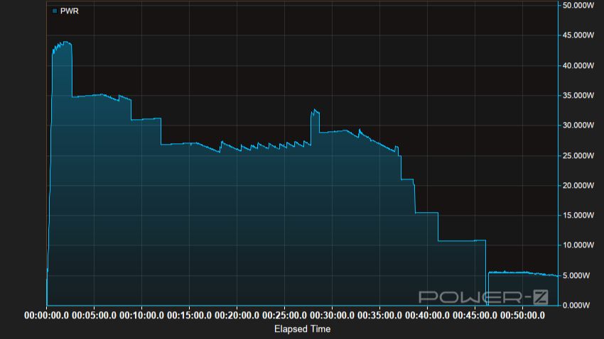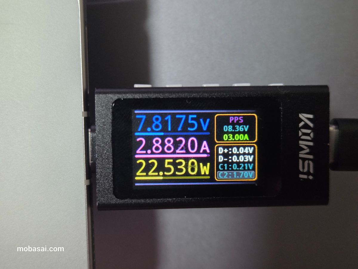 PPS 55Wの範囲は11V-5Aなので、この範囲以上が出力できるUSB-PD PPS充電器および5A対応ケーブルを選んで充電する必要があります。市販で一般的な最大60Wケーブルでは充電が11V-3Aまでとなるので実際には25Wぐらいまで落ちます。