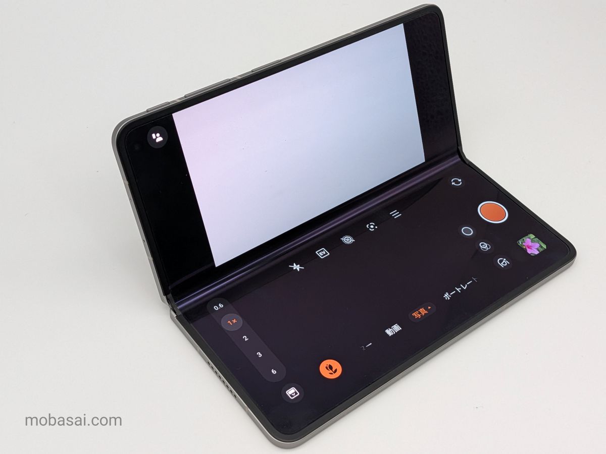 背面カメラで撮影する際にカバーディスプレイに撮影の様子を表示する「デュアルプレビュー機能」を使うことで、そのままセルフィのチェックが可能です。