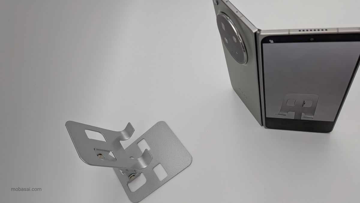 次に自撮り。OPPO Find N6は折りたたむことで縦でも横でも自立するので、三脚などがなくとも自撮りできます。