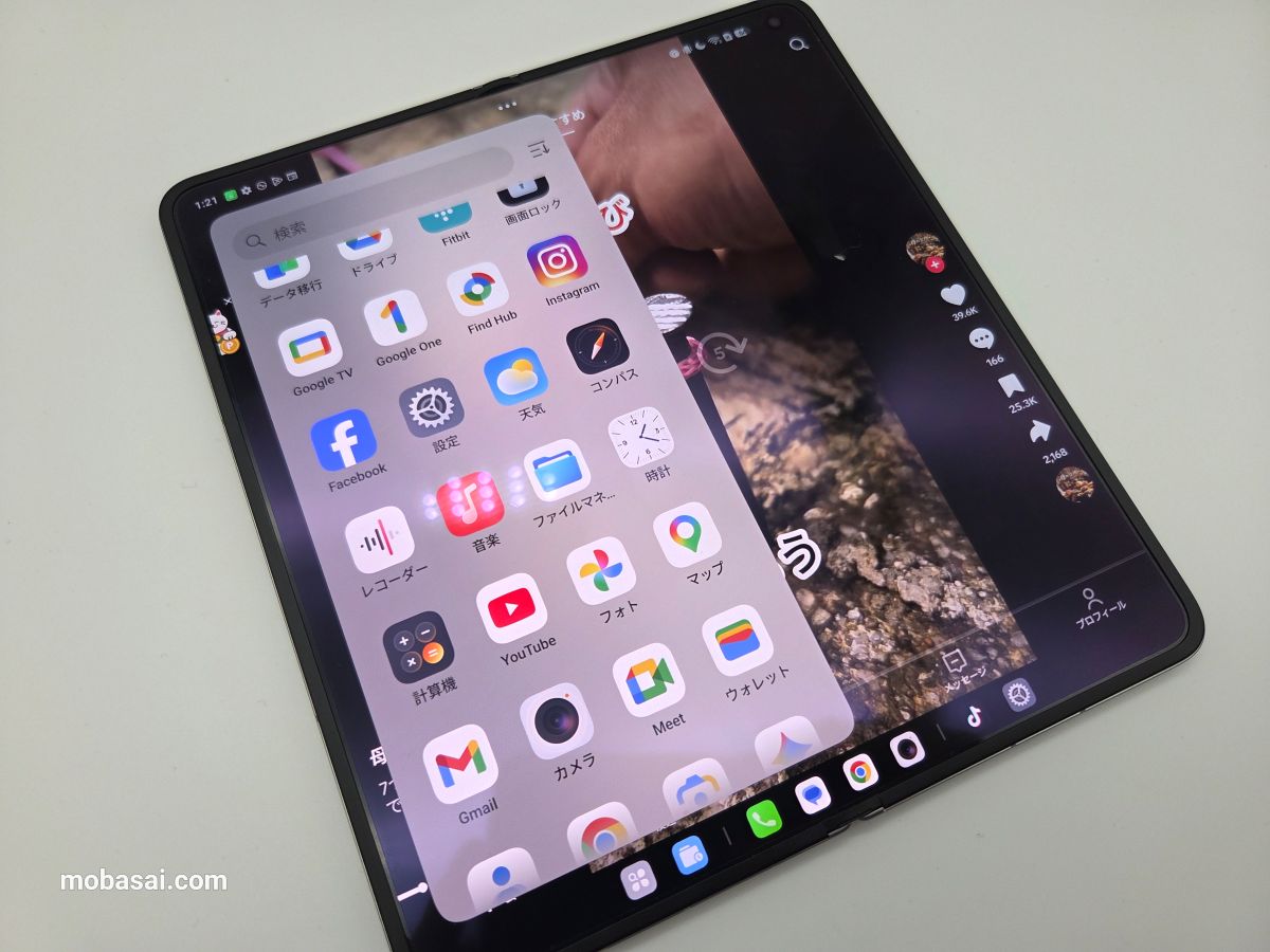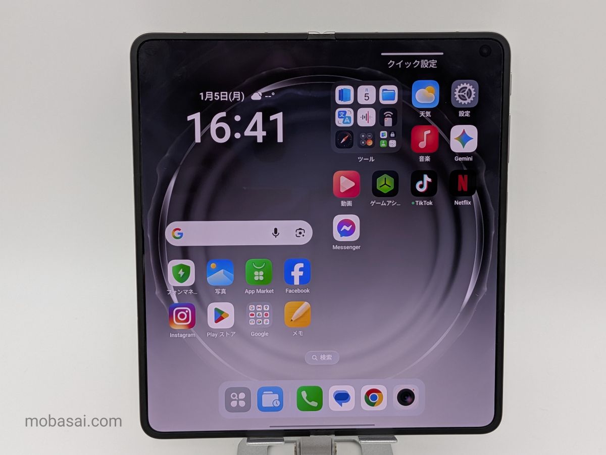 一部アプリでは折りたたみスマホのUIに最適化されてなさそうな部分もあって、ゲームなどで全画面モードになると開いた状態であっても画面が90度傾いて横画面になってしまいます。画面の向きを気にせずそのまま利用できたほうが快適です。