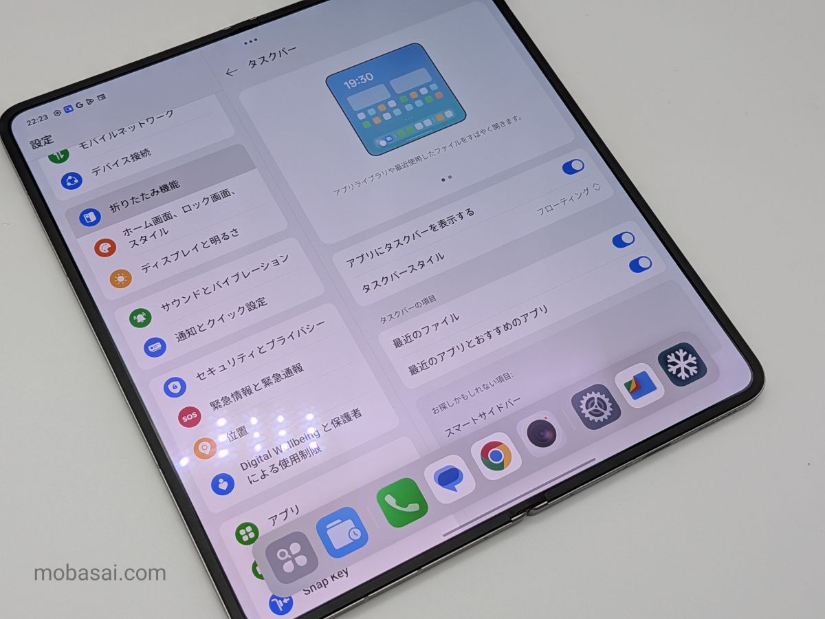 まずタスクバー。Android 12L OSにて登場したタブレット向けの機能ですが、折りたたみスマホのOPPO Find N6ならそれが利用可能です。