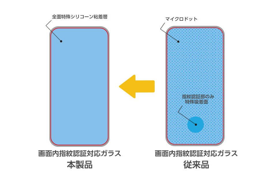 超音波式センサーのためガラスフィルムを貼ると指紋認証が機能しなくなります。薄めのTPUフィルム、ハイドロゲルフィルムなどが認証可能です。