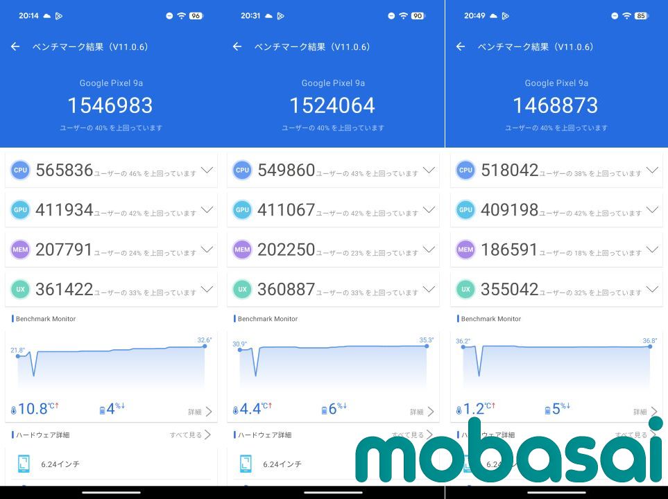 Pixel 9a 画面温度比較