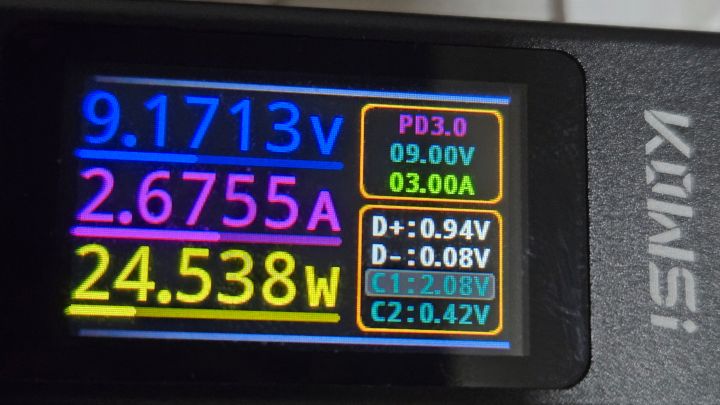 実際にUSBテスターで調べてみたところ、充電規格はUSB-PD 3.0とだけ表示されていたので、PPSには対応していないみたいです。