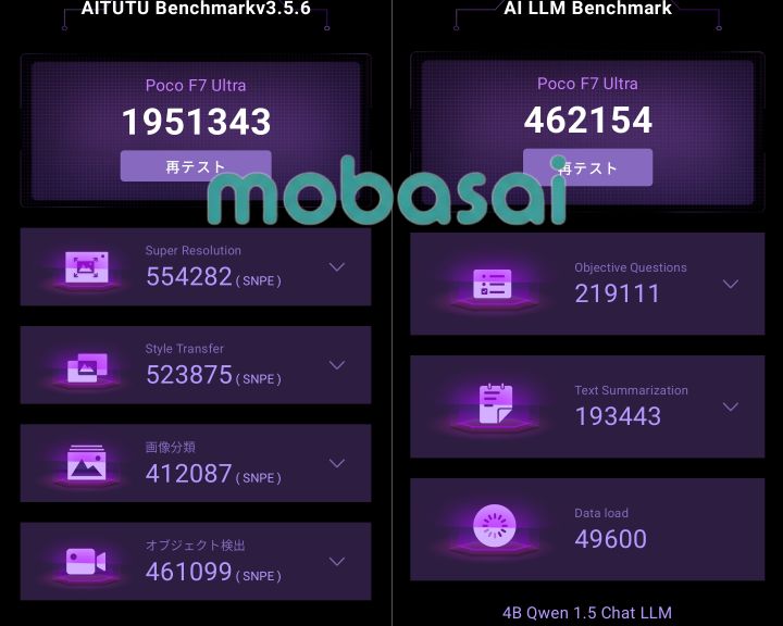 AnTuTuベンチマークのAI性能を測定するAITuTu v3.5を測定しました。