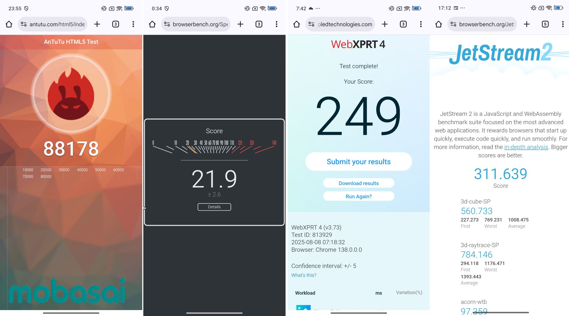 その他、AnTuTu HTML5、Speedometer3.1、WebXPRT4、Jetstream2のスコアです。