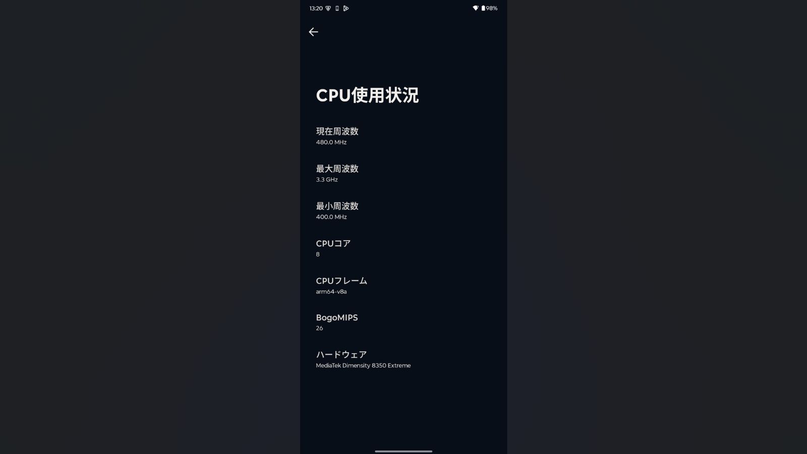 motorola edge 60 pro では端末のシステム上で「Dimensity 8350 Extreme」と表記されていました。